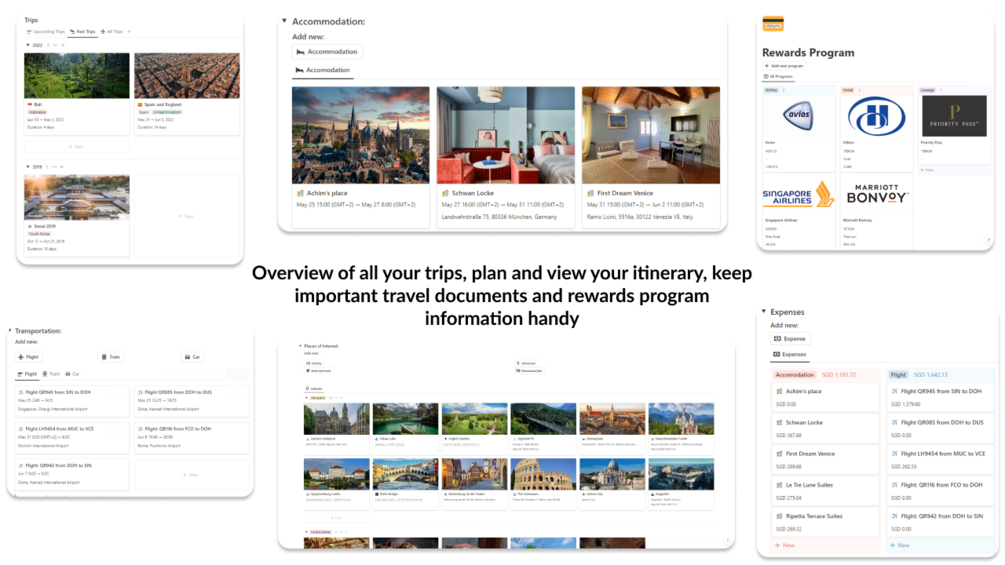 The all-in-one travel planner is created by me, a passionate traveler and Notion enthusiast. I created this template to simplify my own travel planning and share it with other travelers who want to use Notion for their trips.